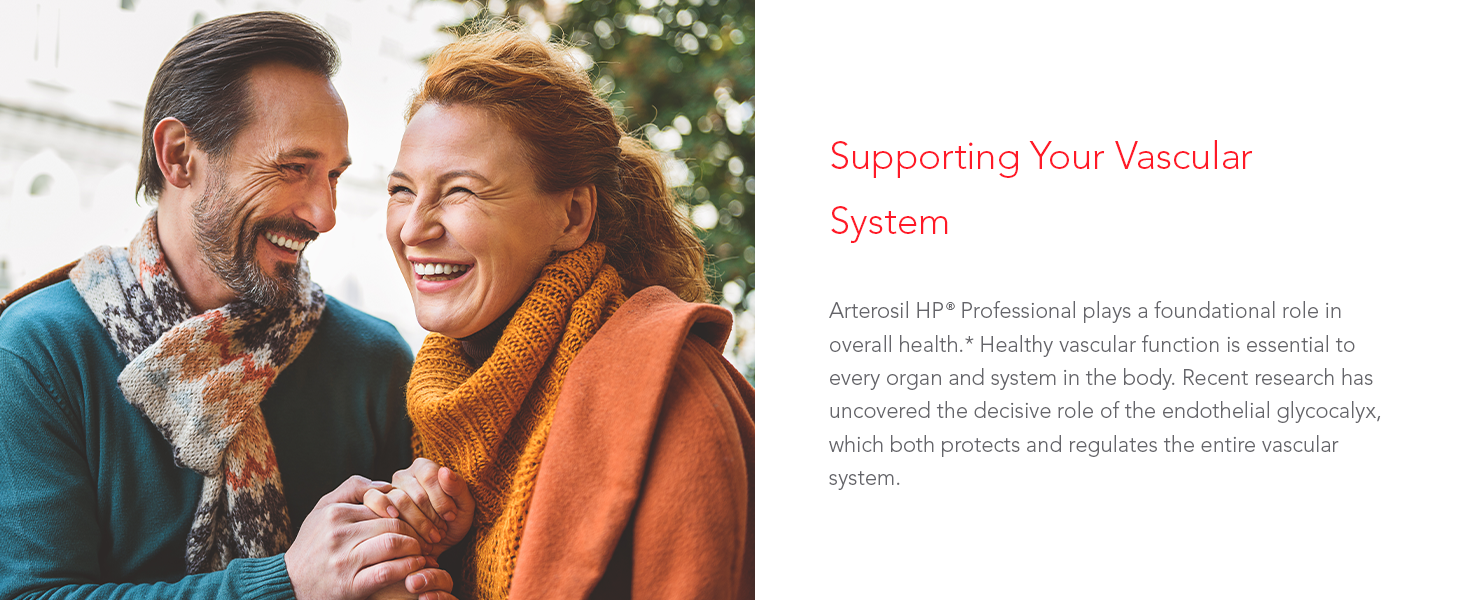 Healthy vascular function is essential to every organ and system in the body. Recent research has uncovered the decisive role of the endothelial glycocalyx, which both protects and regulates the entire vascular system. Arterosil HP plays a foundational role in overall health.*